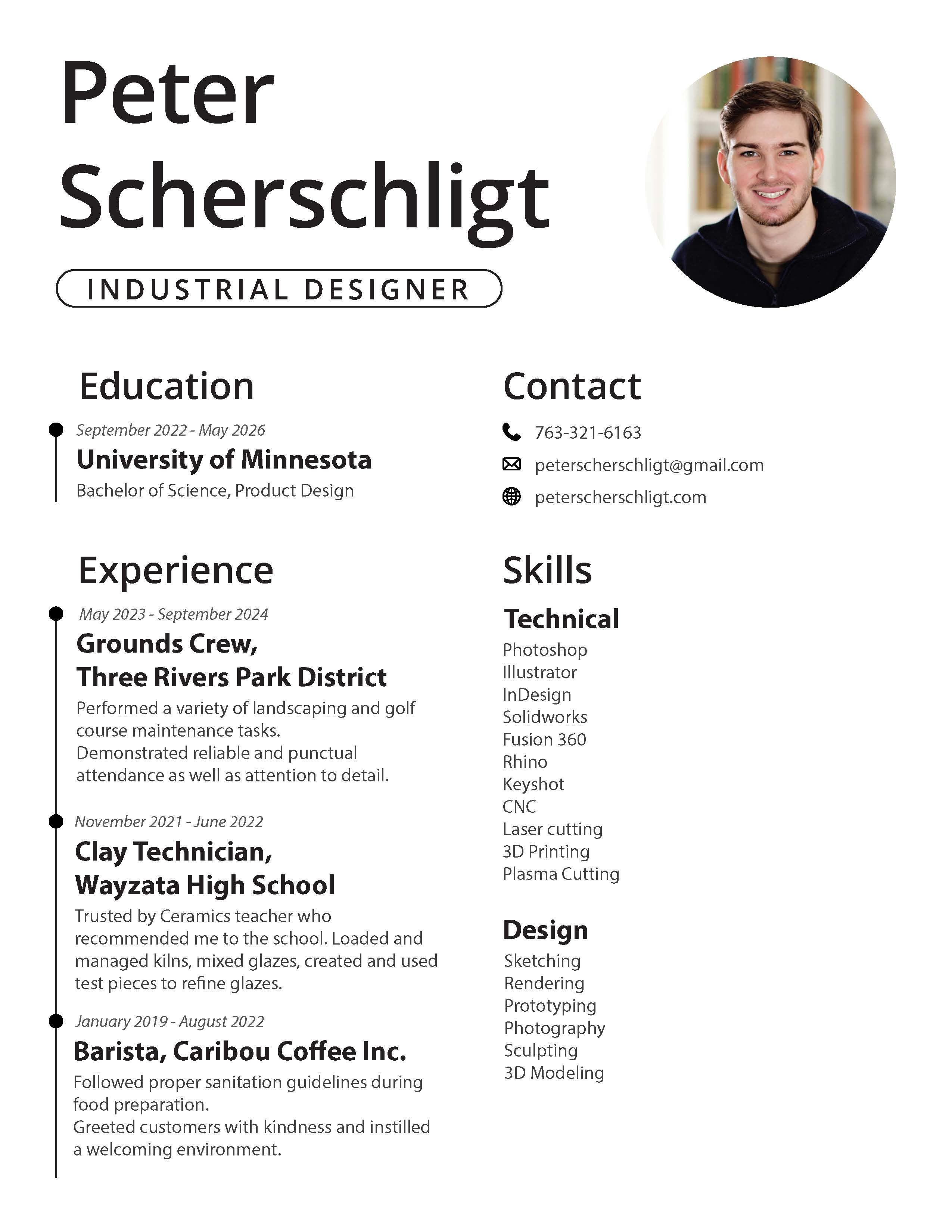 I am an Industrial and Product Designer with a passion for giving form to concepts. I started studying Product Design in the fall of 2022 at the University of Minnesota where I discovered a love of industrial design. I like to say that I have always been a designer, I just didn’t always know it. Since a young age I have been a maker, artist, and problem solver. And now I have the resources to develop these skills and improve myself as a designer.