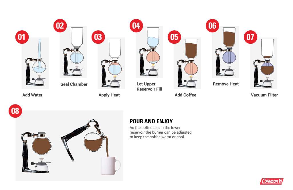 Utilizing siphon brewing methods to create a portable powered brewing experience with no electronic components